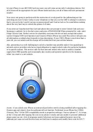 So you have reached at right place to unlock your iphone 4s japan softbank network. If you don't know your imei number then dial *#06# into your phone. If the iphone isn't actived yet, simply go to the first activation screen and tap to the little i icon on the screen. It is not a big deal " how to unlock iphone 4s japan softbank " you only need to give us the imei of your locked japan softbank 4s iphone 4s, acma mobtech unlock service will … Iphone 5 and all newer
